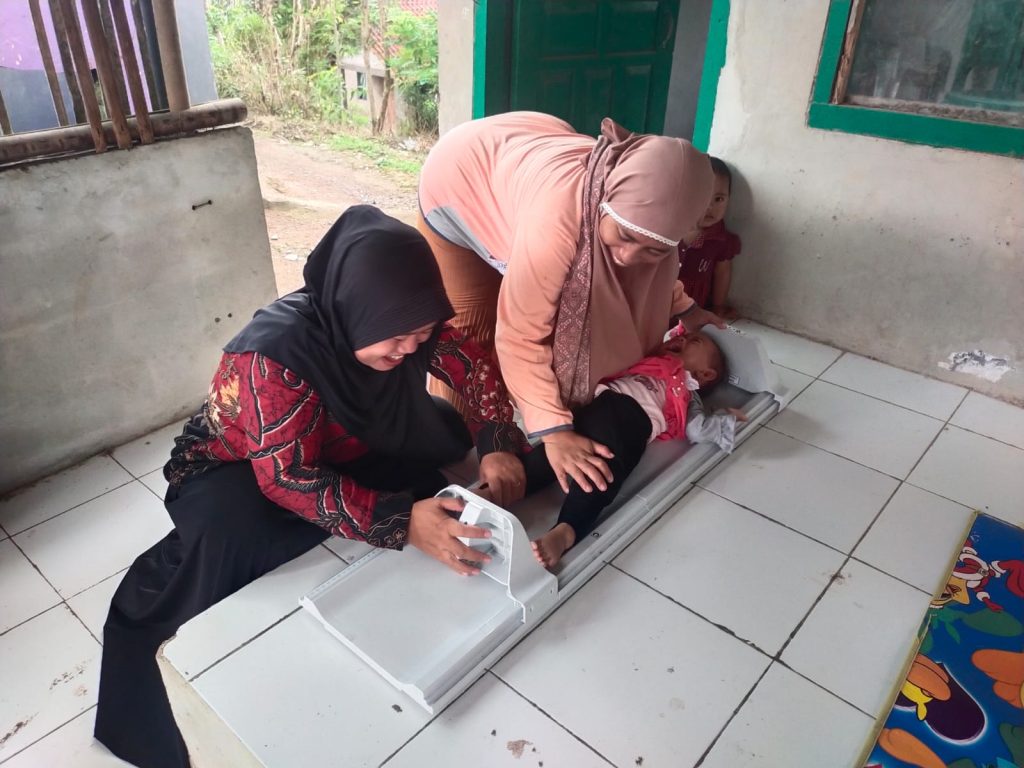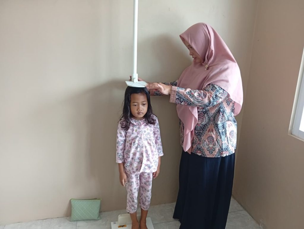Selanjutnya, kader Posyandu menimbang berat badan dan mengukur tinggi badan balita. Dengan demikian, petugas dapat memantau pertumbuhan anak secara rutin. Jika ditemukan indikasi masalah gizi, maka petugas dapat segera melakukan penanganan lebih lanjut.